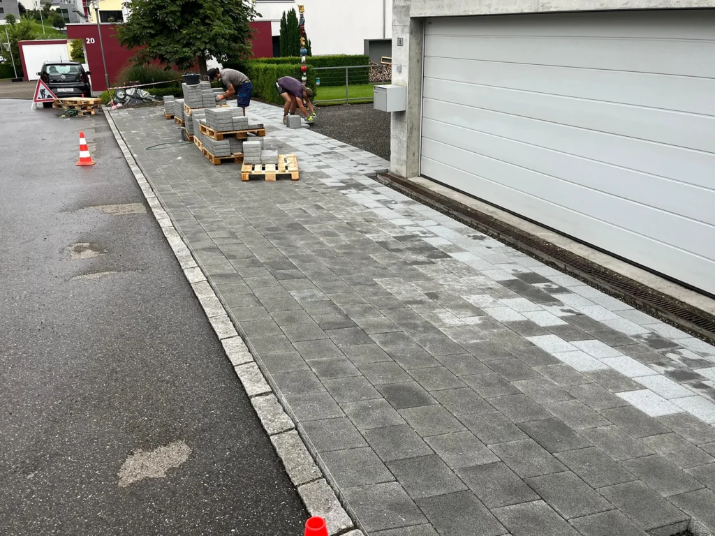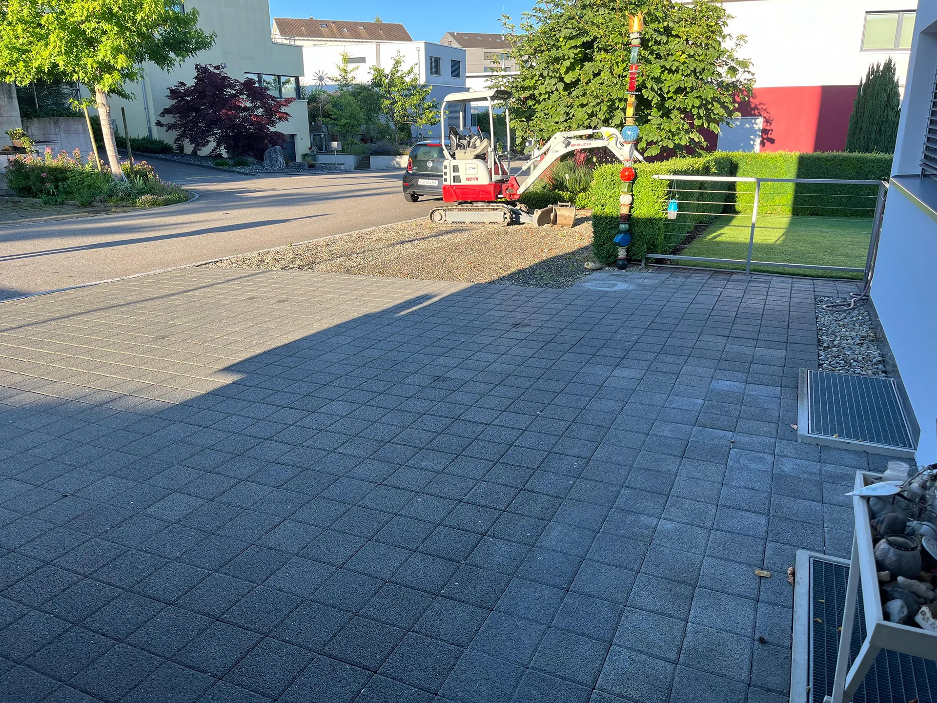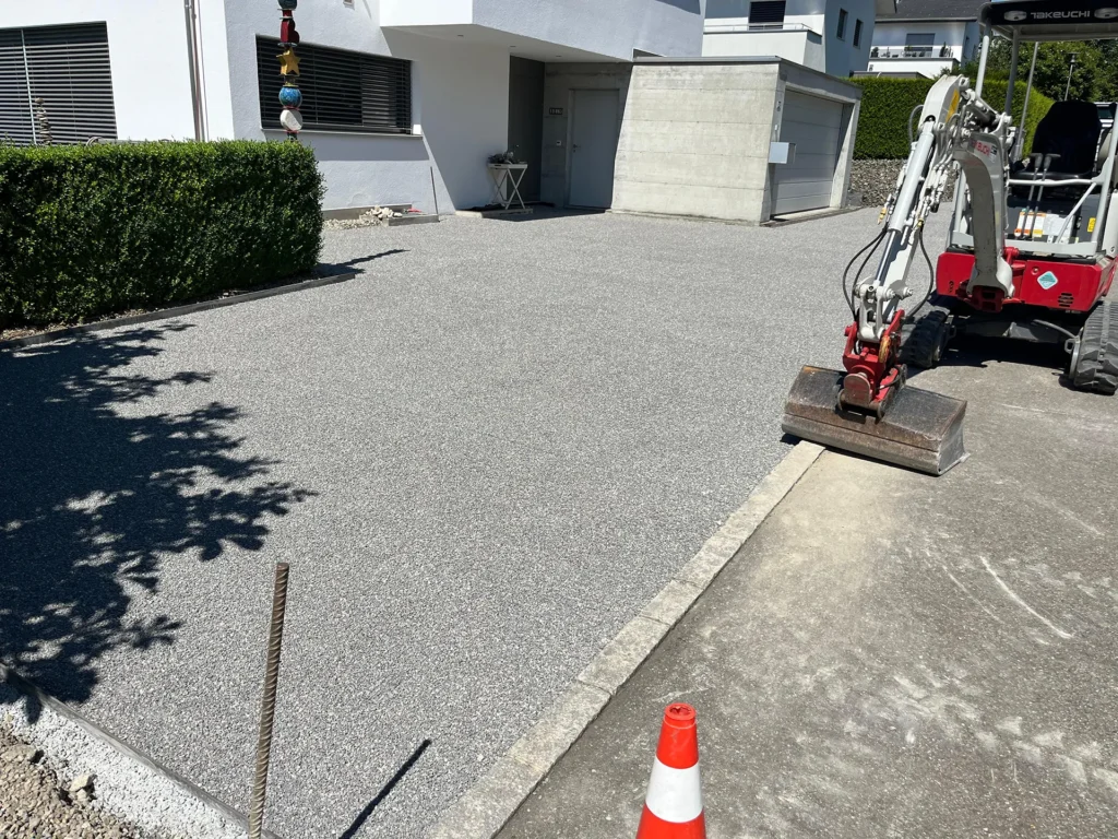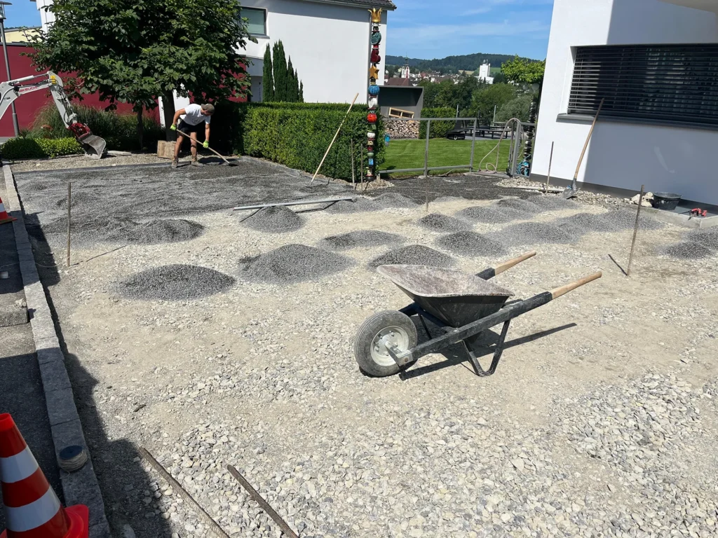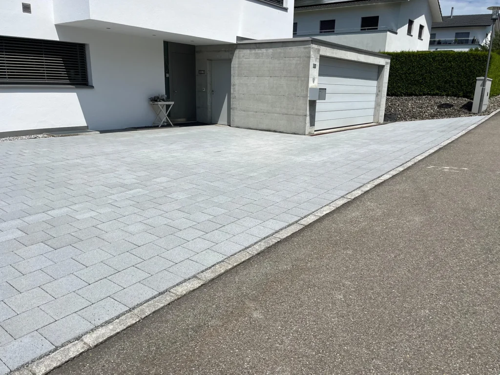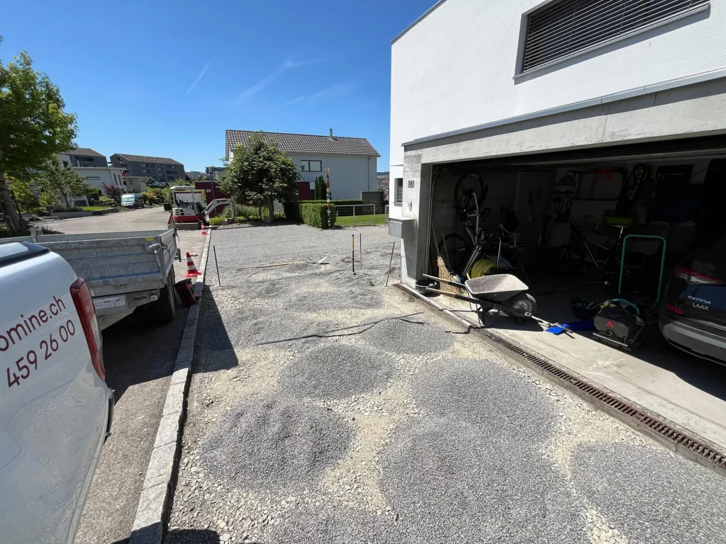 Bei diesem Projekt hat Jardin Dominé den alten Sickersteinen einen kräftigen Tritt gegeben und sie gegen neue Exemplare ausgetauscht. Der grosse Vorteil? Keine lästigen Pfützen mehr! So bleibt der Platz trocken und sieht zudem noch klasse aus.